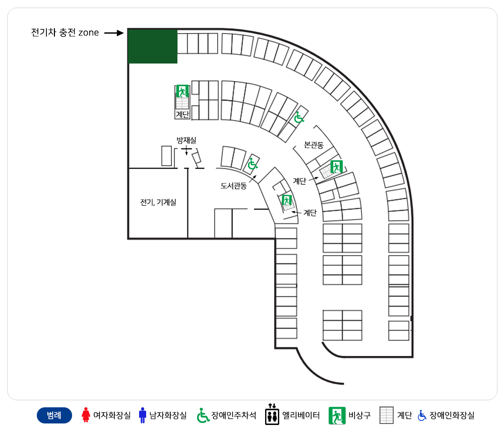 | 1층 | 육아종합지원센터 | 영유아 열람실/자료실, 가족열람실, 영어키즈체험실 서버통신실, 수서정리실 |